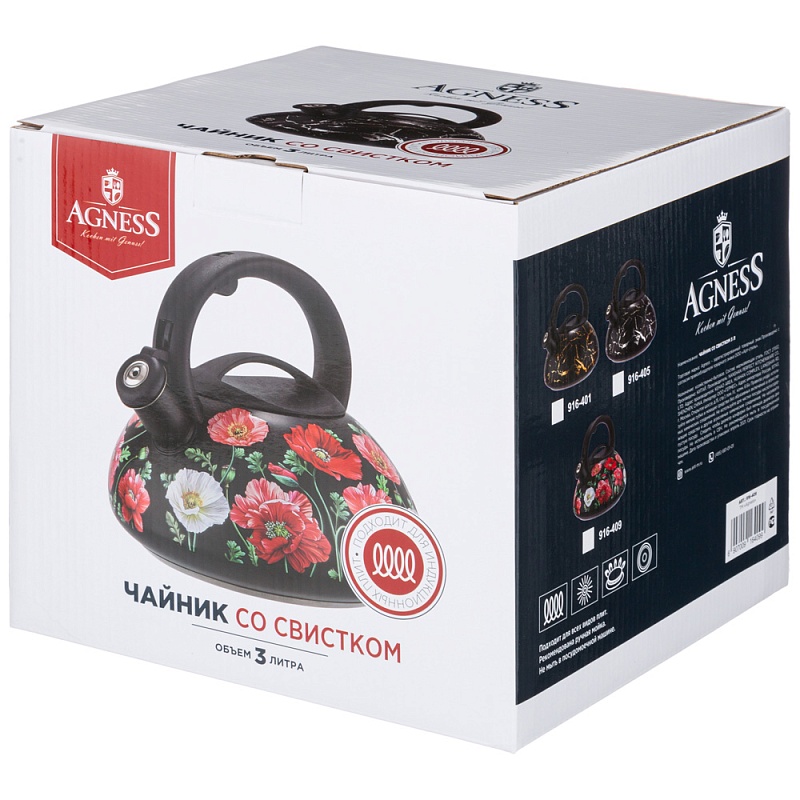 ЧАЙНИК AGNESS СО СВИСТКОМ 2,8л ТЕРМОАККУМУЛИРУЮЩЕЕ ДНО ИНДУКЦИЯ ВСТРОЕННЫЙ ТЕРМОМЕТР 908-067 (6/1)Артикул: 117818В наличии1 361 ₽