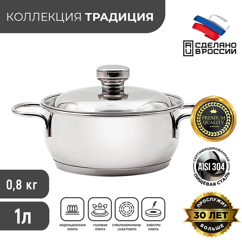 Кастрюля 1,0л "ТРАДИЦИЯ" ТРС прут.руч. 3с97 (8)