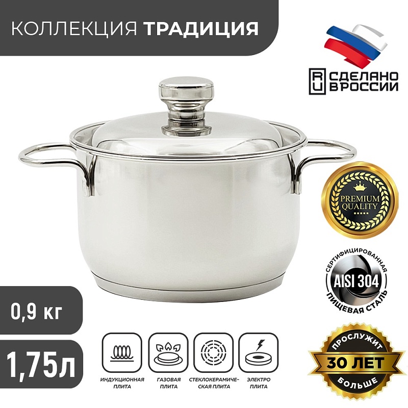 Кастрюля 1,75л "ТРАДИЦИЯ" ТРС прут.руч. 3с98 (6)