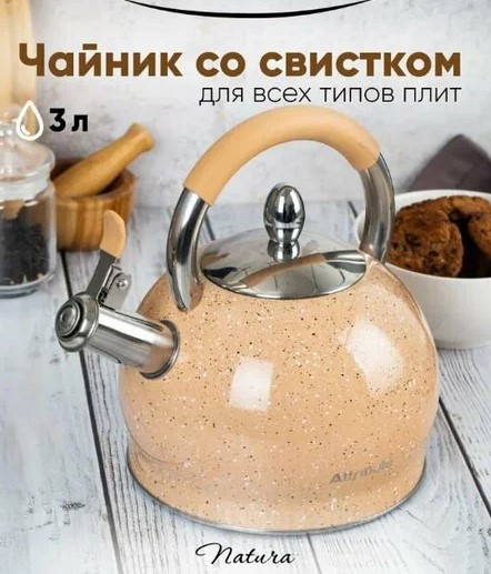 Чайник NATURA бежевый 3л со свистком ASN007-B (6/1)