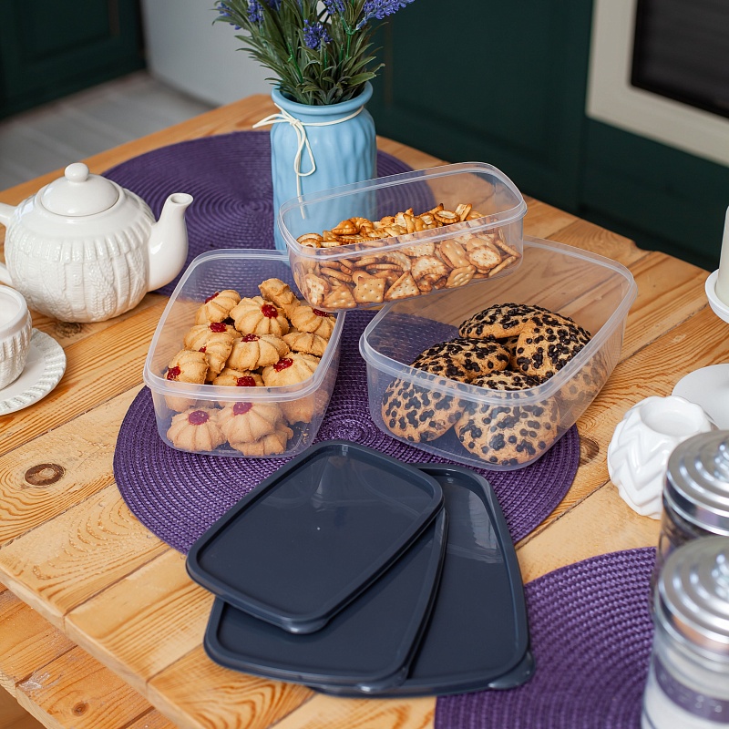 Набор контейнеров квадратных 5шт (0,25л+0,5л+0,9л+1,5л+2,5л) прозрачный (24/1)Артикул: 103475В наличии456 ₽
