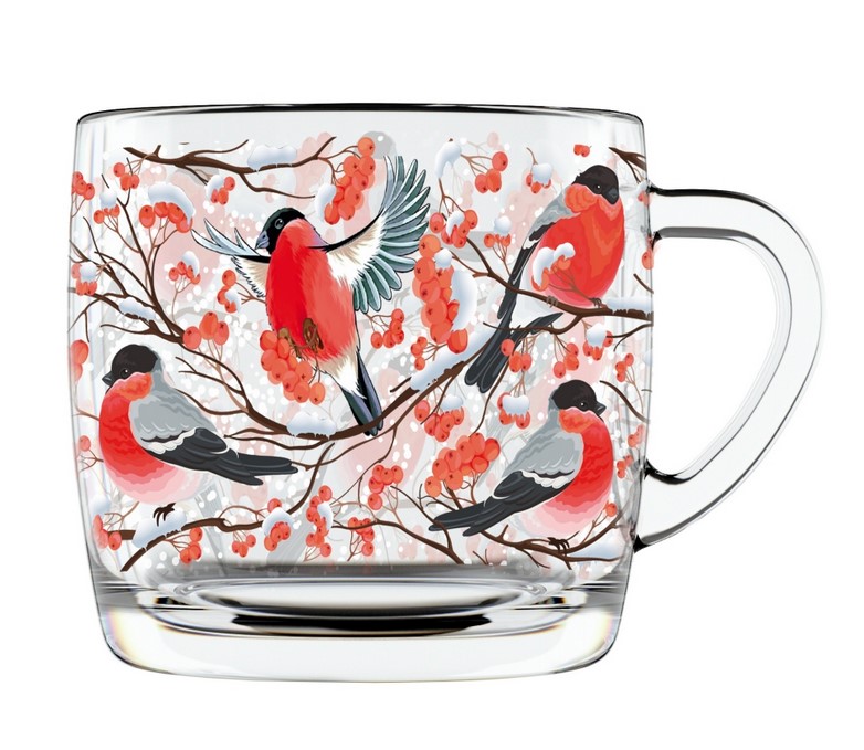 Кружка для чая 300мл арт 208-ГН9 Снегопад красный (12)