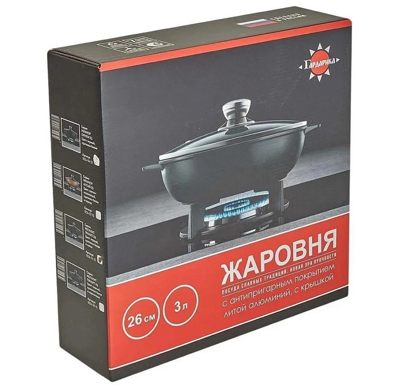 Жаровня с антипригарным покрытием и стеклянной крышкой в индупаковке д 26 линейка Гранит Серия Мегалит 18 1826-18-10 (6/1)