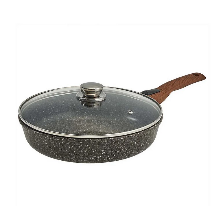 Жаровня с антипригарным покрытием и стеклянной крышкой в индупаковке д 28 линейка Гранит Серия Мегалит 18 1828-18-10 (6/1)