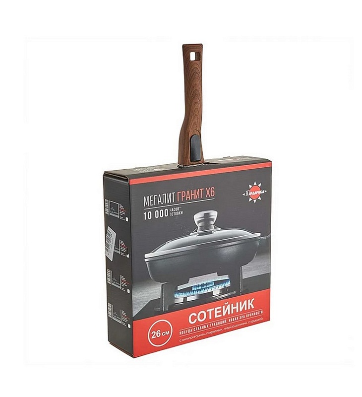 Жаровня с антипригарным покрытием и стеклянной крышкой в индупаковке д 26 линейка Гранит Серия Мегалит 18 1826-18-10 (6/1)