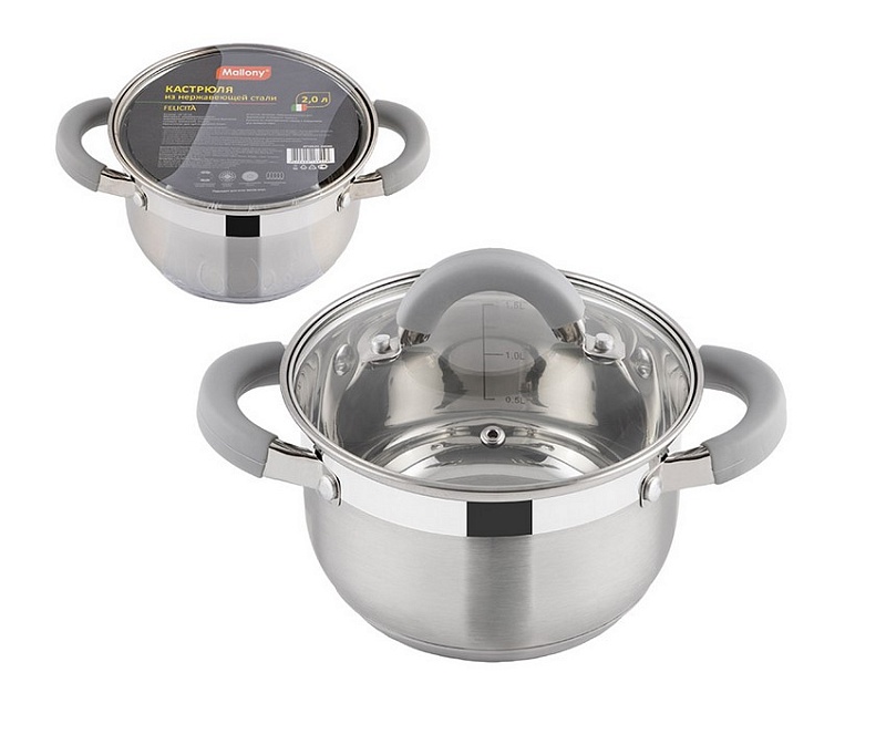 Кастрюля Felicita объем 2 л из нерж стали с крышкой из жаропрочного стекла размер 16*10 см 009386 (6/1)Артикул: 109347В наличии675 ₽