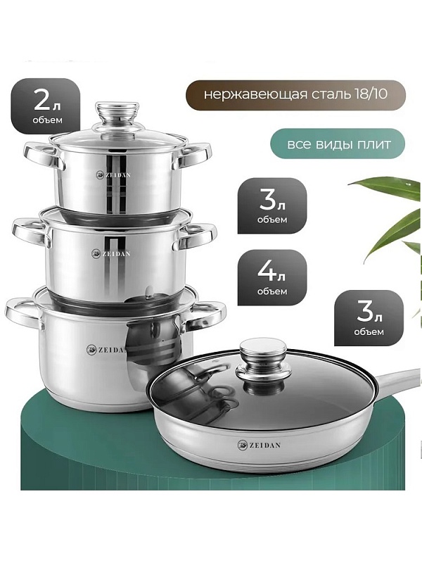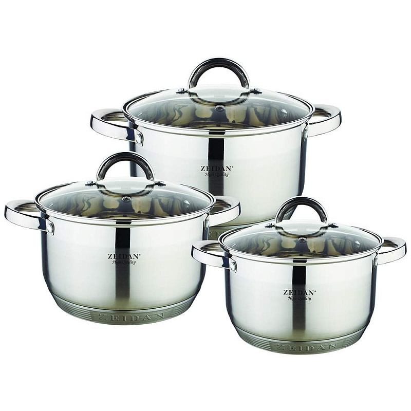 НовинкаНабор кастрюль нерж 4л, 5.3л, 6.7л со стеклянными крышками ZEIDAN Z-50626 (4/1)Артикул: 125323В наличии2 661 ₽