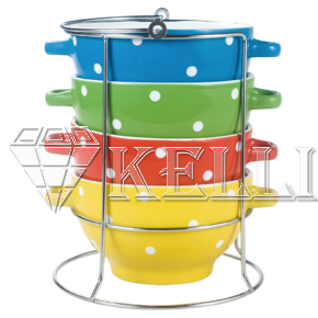 Набор керамическиx супниц из 4 предметов на подставке KL-384 (6)
