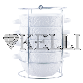 Набор керамическиx супниц с ручками из 4 предметов на подставке KL-394 (6)