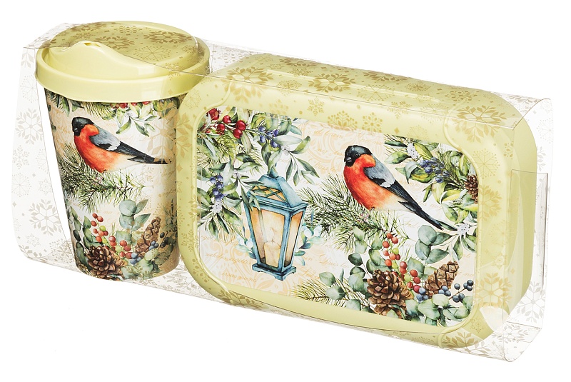 Набор: стакан "IZI-GO" с крышкой 420мл с декором + ланч-бокс 0,85л с декором салатовый 222106420/04 (20/1)Артикул: 111034В наличии281 ₽