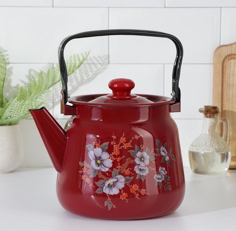 Чайник 3,5 л сфер декор, вишнёвый/чёрный рябчик, с пл кнопкой С2716.3ЯР (4)