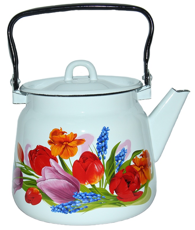 Чайник 3,5 л сфер Тюльпан Май белый/чёрный рябчик с петлёй С2716.Р*119 (4)