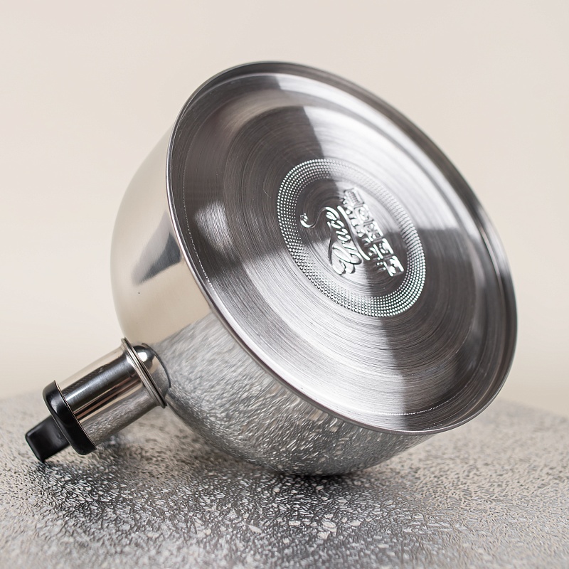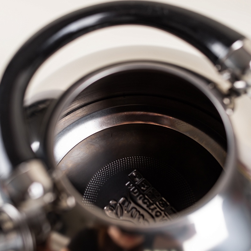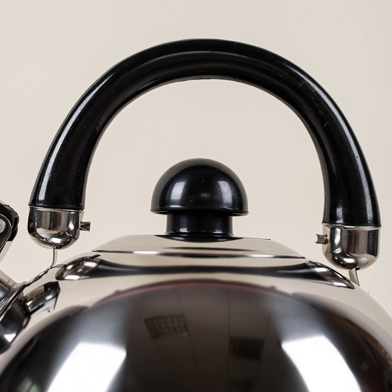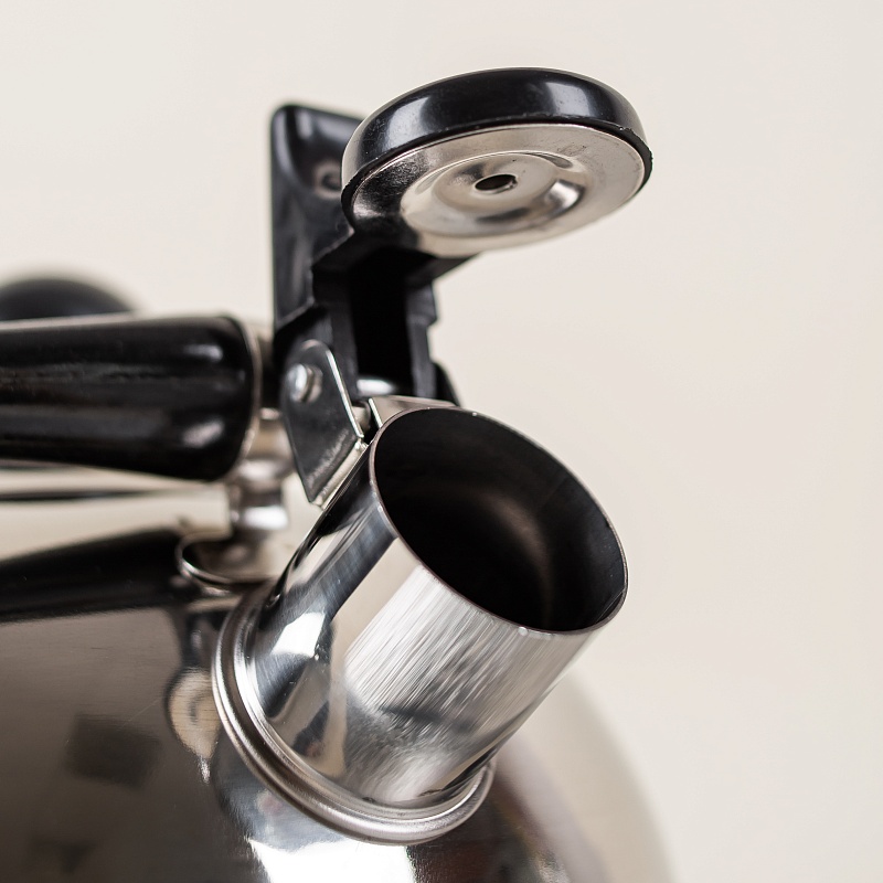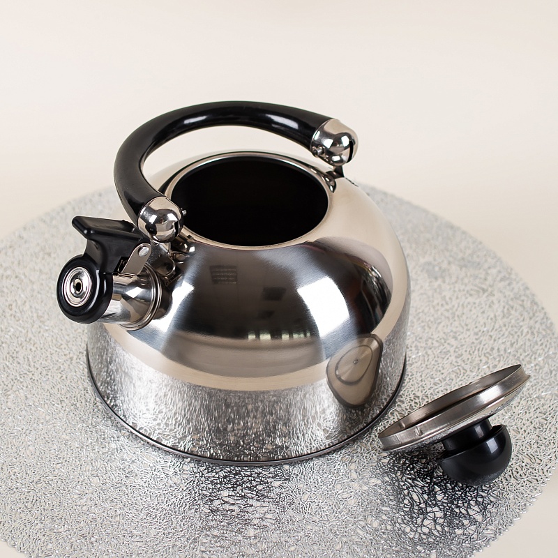 Данная модель чайника объемом 2,5 литра со свистком подходит для всех видов плит, включая индукционные. Изделие выполнено из высококачественной нержавеющей стали, что гарантирует долговечность и прочность даже при ежедневном использовании. Чайник оснащен удобной подвижной ручкой черного цвета и рычагом для открывания носика.