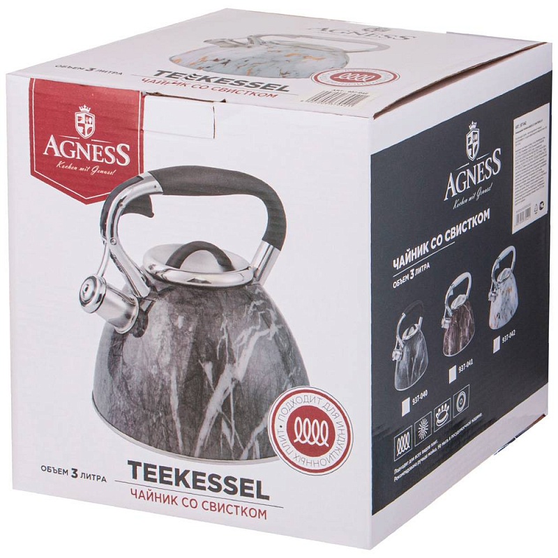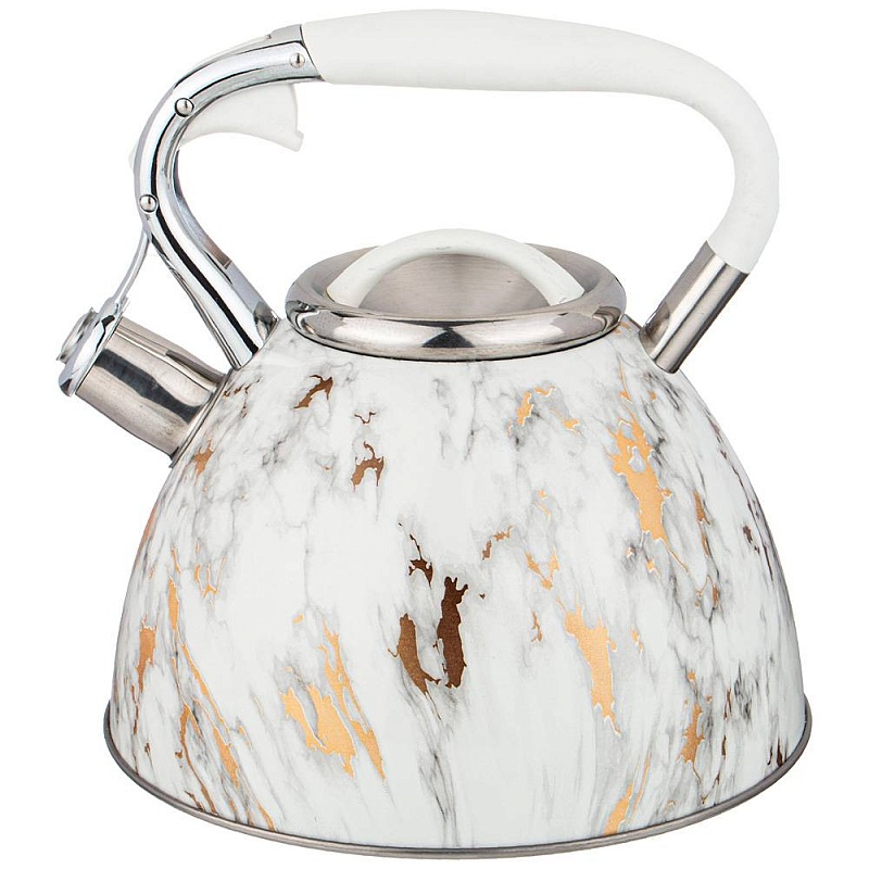 Чайник со свистком, серия Fantasy, 3,0 л, индукционное капсульное дно, цвет: белый мрамор 937-042 (6/1)
