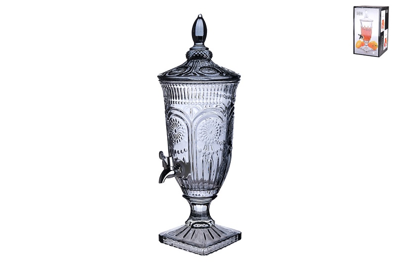 Утонченный диспенсер (из стекла с металлическим краном) позволит вам не только оригинально подать любимые напитки, но и придаст утонченности и разнообразия интерьеру вашей кухни или барной зоны. Дозатор для напитков станет отличным подарком для любителей роскоши и стиля, а также всем тем, кто любит домашний лимонад, фруктовый пунш, соки, чай, компот, слабоалкогольные коктейли, глинтвейн, грог и любые другие теплые или охлажденные напитки.