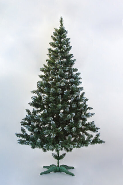 Ель «Лидия» высотой 220 сантиметров зеленого цвета на пластиковой опоре. Ее иголки изготовлены из пленки ПВХ. Диаметр веточки и нижнего ряда 9 и 120 см соответственно. Кончики окрашены «под снег», имеет коническую форму, увеличенное количество веток — 472, пышная. Лидия выглядит натурально и прекрасно впишется в интерьер любого дома. Упакована в прочную коробку из картона, в которой можно хранить елку между праздниками.