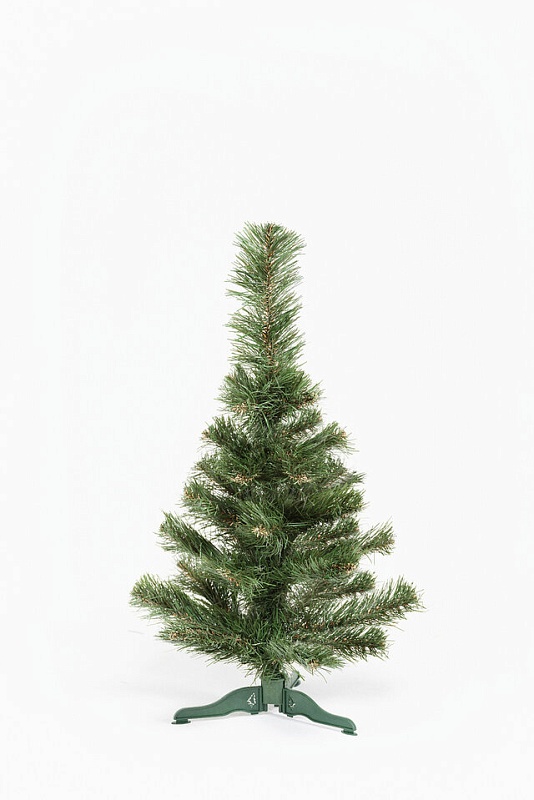 Ель «Сказка» высотой 55 сантиметров зеленого цвета на пластиковой опоре. Ее иголки изготовлены из пленки ПВХ. Диаметр веточки и нижнего ряда 9 и 34 см соответственно. Край веточки не обрабатывается, имеет цилиндрическую форму. Мягкая и пушистая. Самая массовая модель, служит эталоном для сравнения.