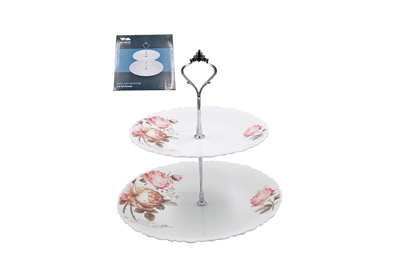 Ваза для фруктов 2-х ярусная LXP2AT YF20032 "Чайные розы" 99266 (12/1)
