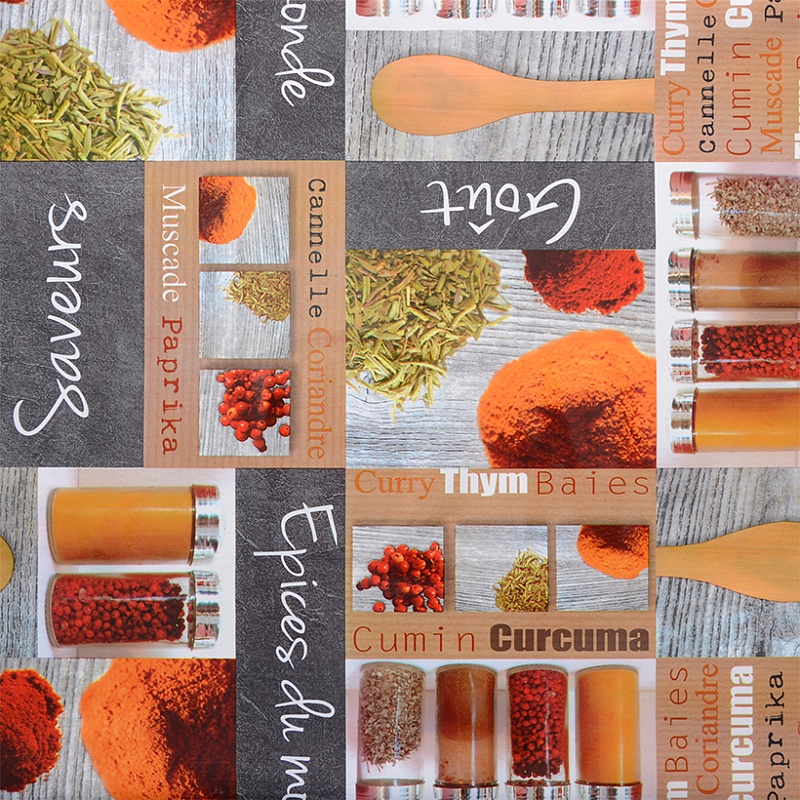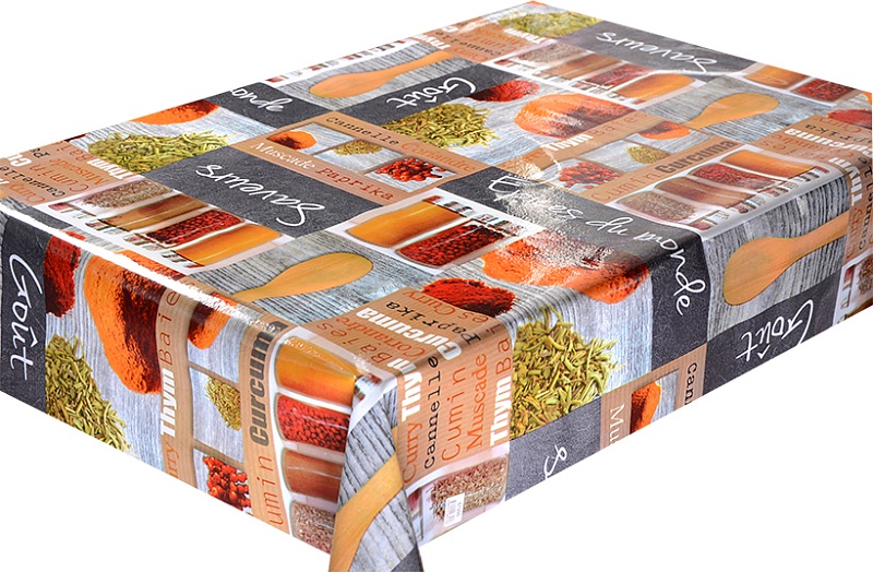 Клеенка для стола с глянцевым блеском "Специи" из ПВХ на нетканой основе. Этот материал обладает рядом преимуществ: очень мягкий, легкий, но прочный, антистатичный, экологически чистый. Клеенка удобна в эксплуатации и является хорошим вариантом для практичной хозяйки. Клеенка не боится пятен, пыли, частиц грязи и воды - ее не нужно стирать, достаточно лишь протереть влажной губкой.