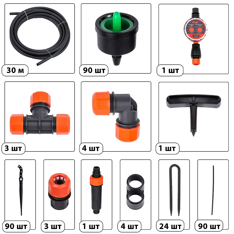 Капельный полив «Жук» от водопровода с таймером на 90 растений (3/1) Ковров
