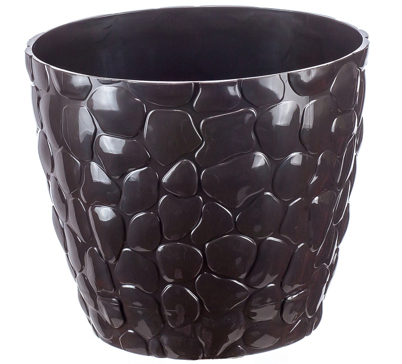 Кашпо КАМНИ с поддоном D150мм 1,4л коричневый ротанг М 3172 (24/1)