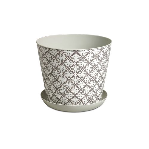 Емкость из пластика для оформления жилых и рабочих помещений, а также садовых и уличных пространств цветочными композициями. Имеет два сценария использования: в качестве кашпо для размещения в нем горшка с растением и в качестве непосредственно цветочного горшка с поддоном (для этого в дне корпуса можно самостоятельно продавить 2 отверстия. Это обеспечит отток лишней влаги из емкости с почвой в поддон). Изделие декорировано с применением технологии IML (вплавляемая этикетка) для создания индивидуального стиля в интерьере и настроения.