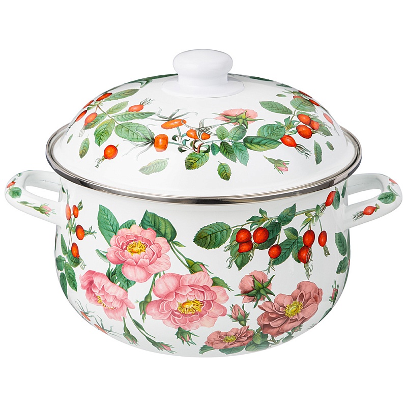 КАСТРЮЛЯ ЭМАЛИРОВАННАЯ С ЭМАЛ КРЫШКОЙ ШИПОВНИК 3,6 Л 22*13 СМ 934-573 (6/1)