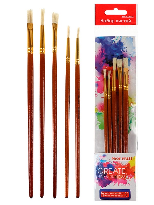 Набор кистей (щетина круг.№3,5,7; щетина плоская №4,9) (НК-2814) 5 шт.