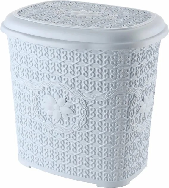 Материал: пластик. Ажурное плетение. Цвета в ассортименте: голубой, белый, пудрово-розовый и бежевый. Корзина для белья (26х21х24,8) с крышкой и ажурным дизайном. В такой корзине удобно хранить все, что вы пожелаете: белье, детские игрушки, материалы для рукоделия, косметику, лекарства и прочие мелочи.