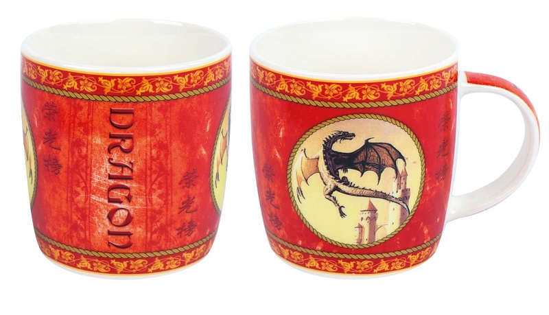 Кружка низкбочка 340 мл B206-A05478 дракон-медальон красный (48/12)