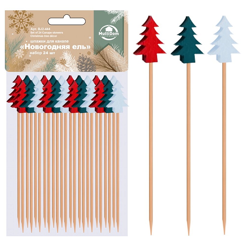 Шпажки для канапе Новогодняя ель Набор 24 шт BJ2-444 (10/1)