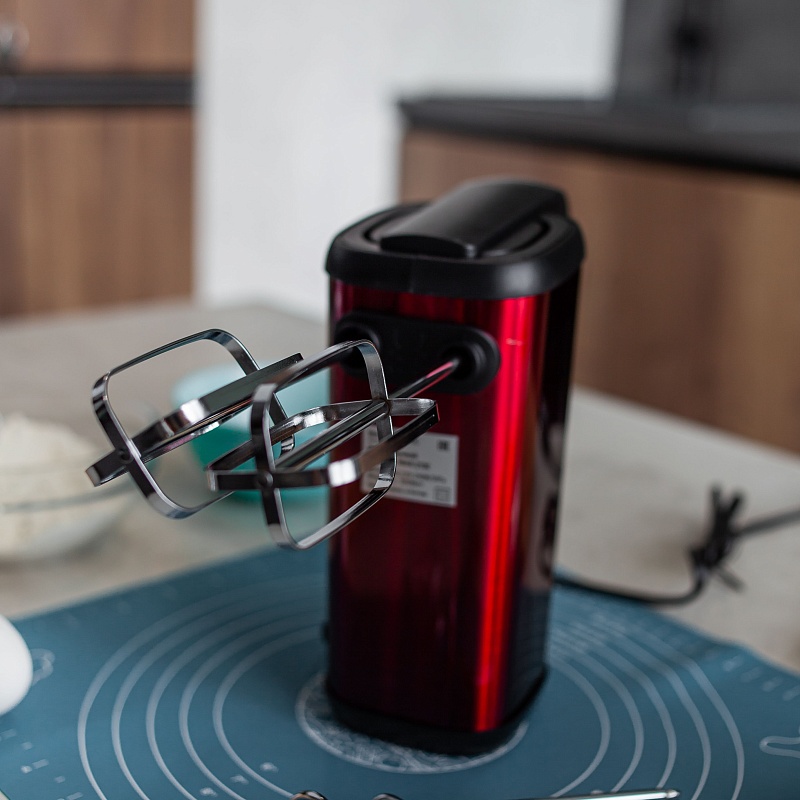 2 вида насадок (крюки для замешивания теста и венчик для взбивания яиц и крема)