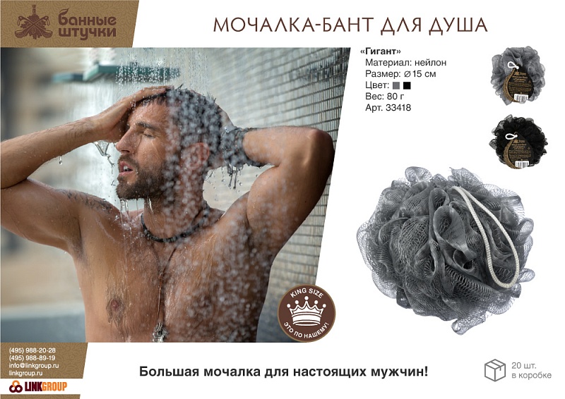 Мочалка для душа БАННЫЕ ШТУЧКИ Бант Гигант 15см 80г 2 цвета 33418 (20/1)