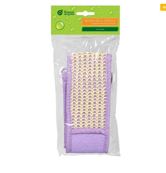 Мочалка из сизаля лента с веревочными ручками 8х70 см 8х80 см с ручками hard 4 цвета Банные штучки 40098 (20/1)