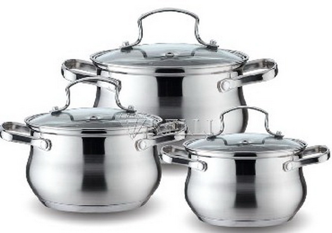 2,1л, 3 л, 4 л, 5-ти слойное капсульное дно, можно использовать на всех типах плит, включая индукционную. Стеклянные крышки с паровыпуском.