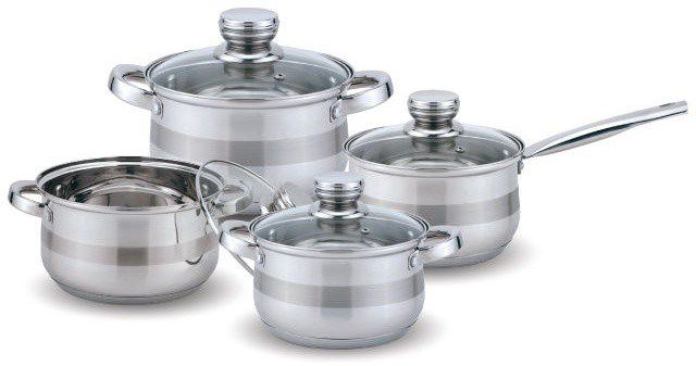 Кастрюли 2,7 л, 3,7 л, 5,0 л, сотейник с крышкой 2,1л, внутри кастрюль шкала измерения,
