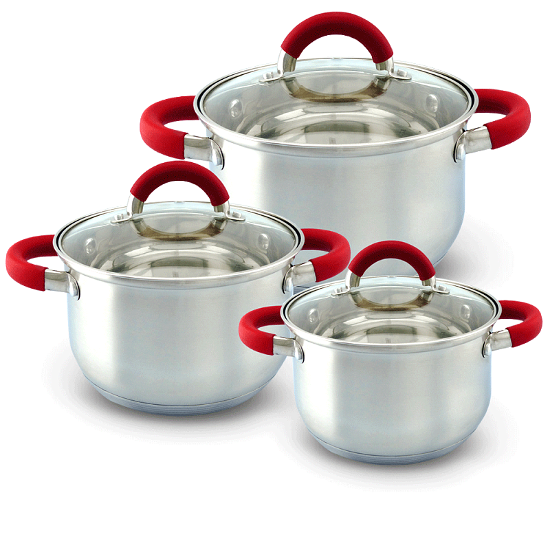 кастрюли 1.9л, 2.6л и 3.6л , капсульное дно, можно использовать на всех типах плит включая индукционную, удобные силиконовые ручки