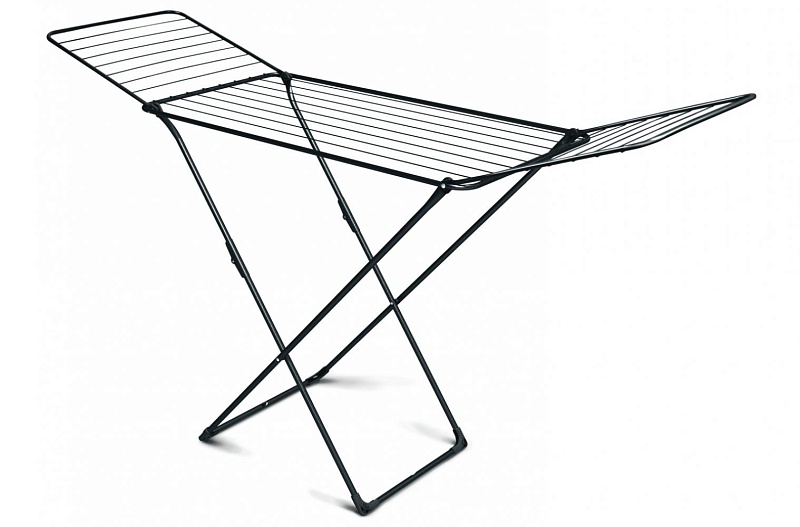 Напольная сушилка для белья с распашными створками имеет габаритные размеры в сложенном виде — 1300х535х40 мм. Длина сушильного полотна — 20 м. Подходит для использования в любых помещениях и на открытом воздухе. Материал: стальные струны с антикоррозийным покрытием и пластмассовые наконечники для дополнительной устойчивости. Максимальная нагрузка не более 17 кг. При необходимости боковые детали сушилки можно сложить «домиком» и сушить трикотажные вещи. Преимущества: удобный механизм складывания. Цвет — черный.