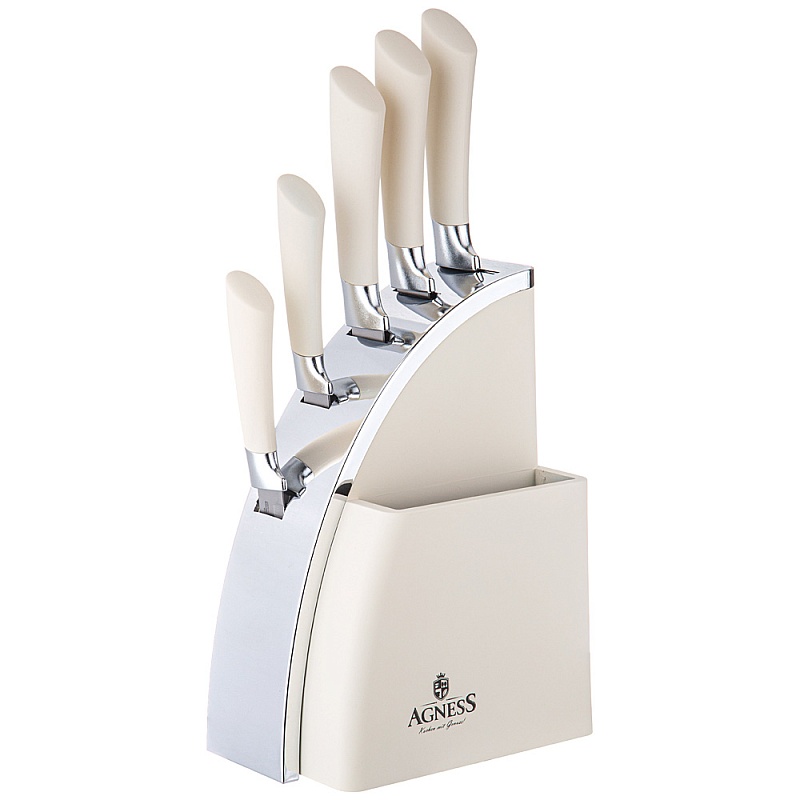 НАБОР НОЖЕЙ AGNESS НА ПЛАСТИКОВОЙ ПОДСТАВКЕ 6 ПРЕДМЕТОВ 911-743