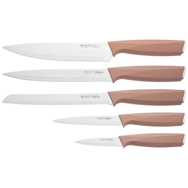 Нож - главный инструмент на кухне, а вернее ножи, т.к. даже самый лучший нож не сможет справиться со всем многообразием задач. Выбирая набор ножей AGNESS - Вы приобретаете комплект самых необходимых и чаще всего используемых ножей. Преимущества ножей AGNESS: