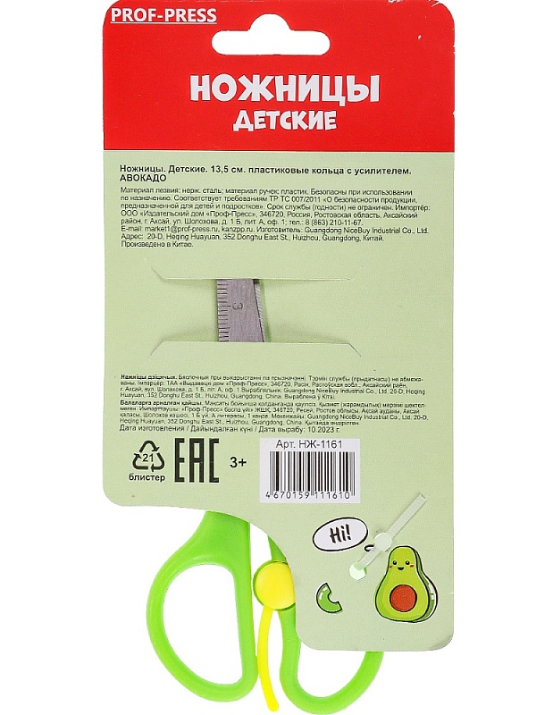 Ножницы детские 13,5 см. АВОКАДО пласт кольца с усилителем, в картон. блистерАртикул: 122878В наличии35 ₽