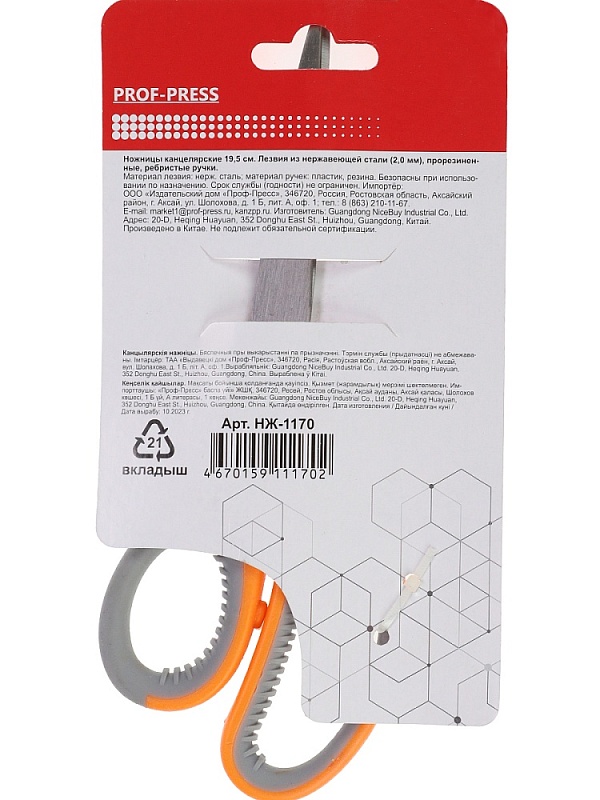 Ножницы канцелярские 19,5 см, лезвия из нерж стали, прорезин ребристые ручкиАртикул: 122883Нет в наличии108 ₽
