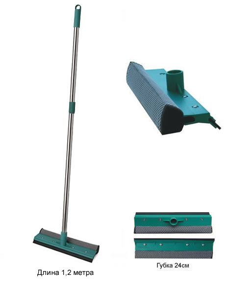 с двухколенным телескоп.черенком из нерж.стали. Ширина рабочей поверхности 24см. Длина в разлож.состоянии 1,2 метра.