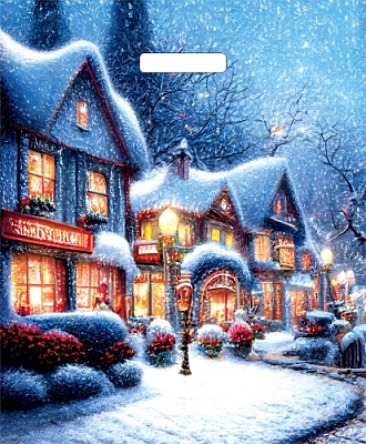 Пакет ПЭ с вырубной ручкой 38х45+3см 60мк Рождественская ночь НГ глянцевый уп 25шт ВУР56614 (20/1)