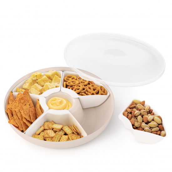 Менажница из коллекции “Оазис” представляет собой блюдо, имеющее пять маленьких салатников и соусницу. Предназначена для сервировки стола, подачи разнообразных закусок: от сыра до сладостей. Количество салатников регулируется в зависимости от блюда. Менажницу можно мыть в ПММ и использовать в СВЧ. Герметичная крышка позволяет дольше сохранять свежесть продуктов. Также менажницу можно использовать в качестве контейнера для транспортировки.