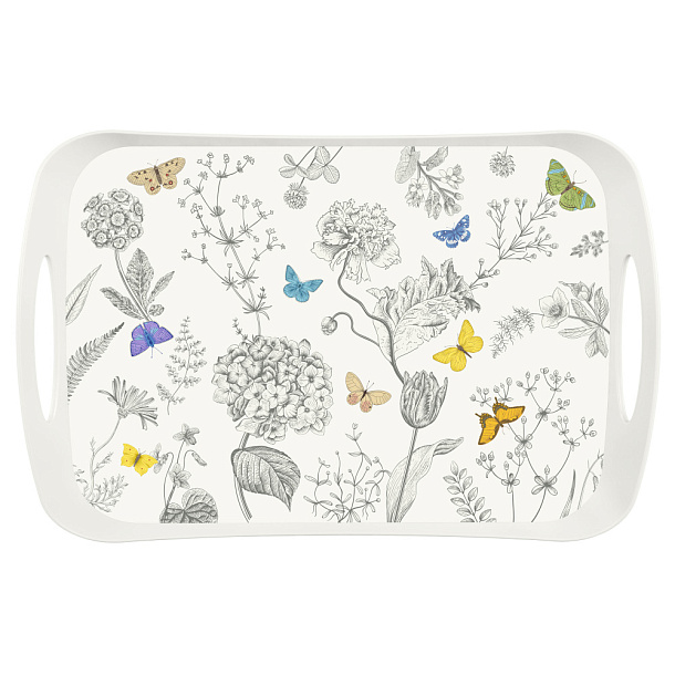 Легкий и удобный в эксплуатации поднос декорирован с помощью современной технологии, благодаря которой декор надежно держится, устойчив к стиранию и механическим повреждениям. Удобные, эргономичные ручки позволяют без труда переносить поднос, а современный декор делает его отличным дополнением интерьера. Изготовлен из прочного пластика: выдерживает большие нагрузки. Не содержит Бисфенол А