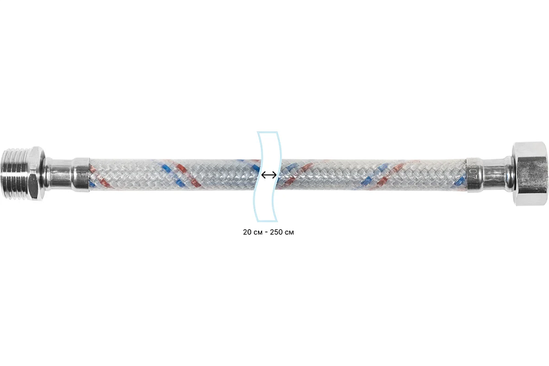 Из-за меньшей теплопроводности, по сравнению с шлангами с нержавеющей нитью, не конденсирует на себя влагу и не подвержен коррозии