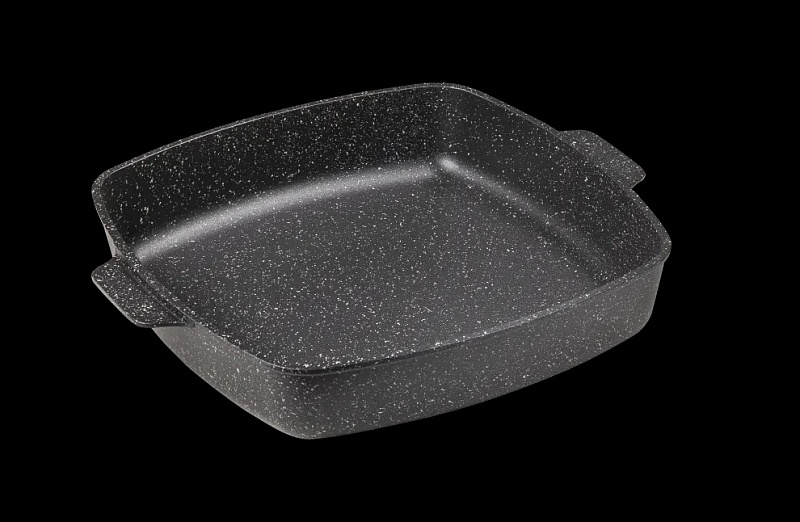 Дополнительный слой с мраморным эффектом увеличивает износостойкость и создаёт оригинальный оттенок чёрного мрамора. Литой пищевой алюминий не имеет канцерогенных веществ и посторонних запахов. Толстые стенки и дно обеспечивают равномерное приготовление блюда. Посуда не деформируется при нагревании. Антипригарное покрытие на водной основе без вредных химических соединений: экологично и безопасно. Мелкие царапины не влияют на безопасность антипригарного покрытия. На противнях можно готовить без масла, их легко мыть.