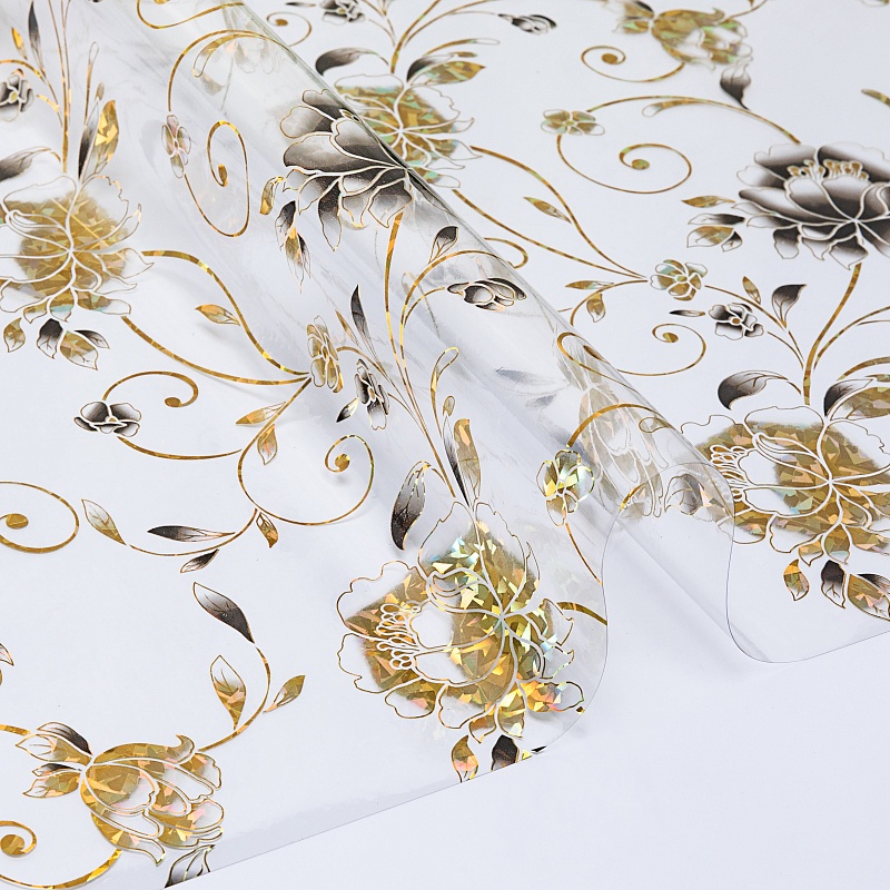 Прозрачная ПВХ без основы, толщина 0,2 мм с лазерным рисунком, с защитной пленкой сверху.