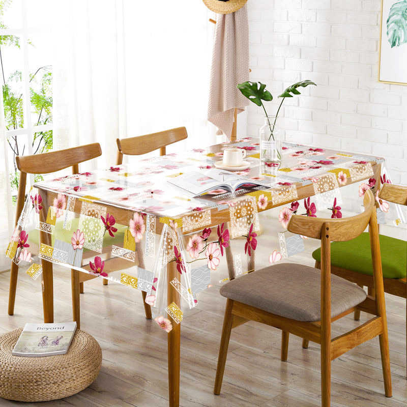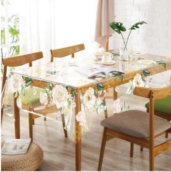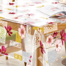 Клеенка ПВХ без основы, Прозрачная с цветным рисунком